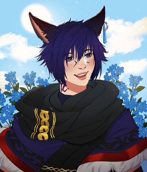 Starting his journey when he first arrived in Limsa Lominsa, life and fate had much more in store for him than he could ever dreamed of.As a Keeper of the Moon Miqo'te with having an affinity with moon and magic he began his journey as an Arcanist. Taking more interest in learning the art of summoning.He spends a lot of his spare time with his Carbuncle by his side.He hasn't always been the most chatty of people. Shy and yet stoic at first but underneath his shyness is a bold and happy guy. He is energetic and a bit chaotic. Aurhi is always enthusiastic about what he loves. He loves to support his husband, friends and the people of Eorzea. He is always willing to give a helping hand to those in need. Many people have took a liking to how he is supportive and loves those he holds dear.He enjoys traveling and seeing new sights but especially when he has someone to enjoy them with.For hobbies and what he does in his free time other than travel he likes to reading about different types of magick, learning history and spending time with his loved ones. He enjoys seeing his friends and his husband. He enjoys spending time with his Carbuncle and chocobo. He also spends time with friends and family. Spending his free time with his husband whenever G'raha is free from his duties with the Students of Baldesion. Aurhi also likes training and keeping up on both his physical and Magical prowess.Aurhi's background is that he comes a large family. He was born as the second born child but first born son to Zana Raihah and Rhel’ra Jakkya. His older sister Urha by a few years and Aurhi were both born in the Black Shroud. His Mother and Father wanted to start over and move away from old traditions and moved to Costa Del Sol when Aurhi was a young child. Soon after the move his parents had his younger sister Una, who would someday follow in his foot steps into becoming a Warrior of Light like her brother.Aurhi grew up helping his Father with his fishing and helping the family in any way he could. His Mom and Dad a while after Una was born found two couples of Seekers and the three couples became a family unit. So now Aurhi has his birth parents and 2 other dads and moms in his life. So his family grew larger by the day.Aurhi always felt connected with the night and magicks since he was a child. So he would often visit his grandparents who were in the Black Shroud, who would teach him the ways of keepers.Character Info